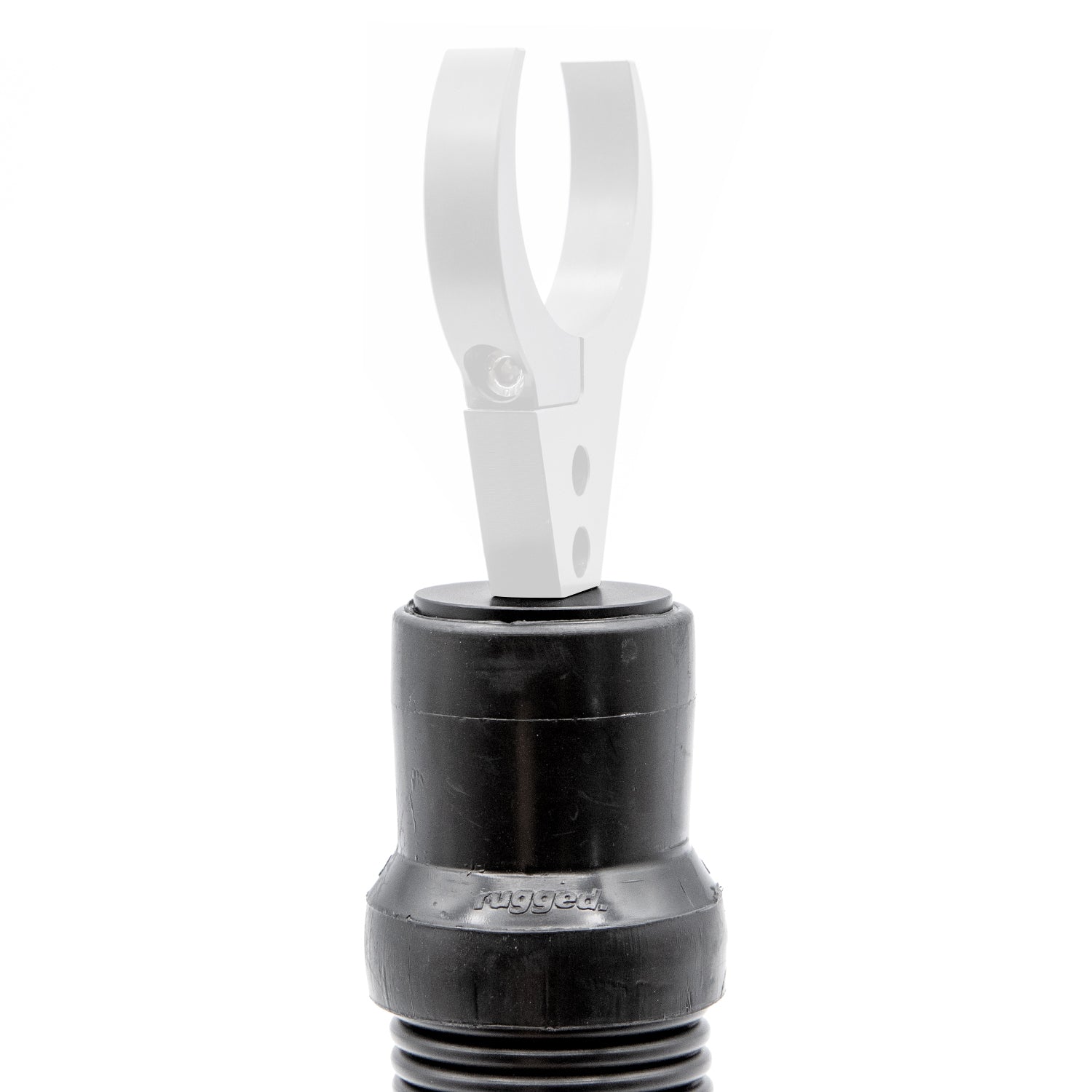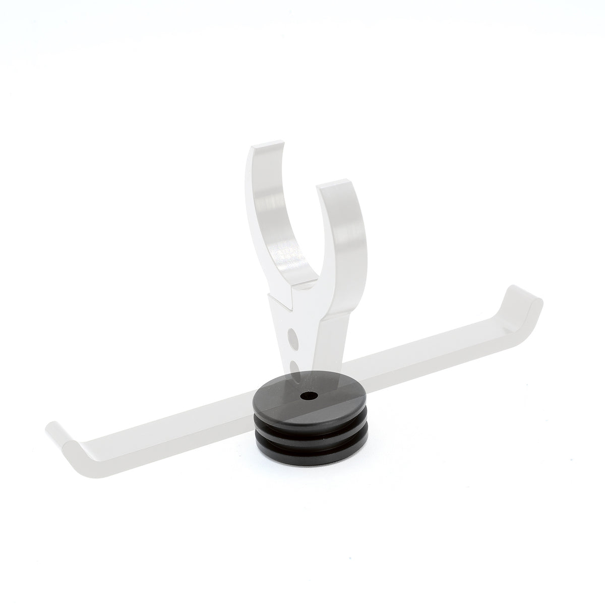 Mantenga la manguera del sistema de bombeo MAC apartada cuando no esté en uso con un colgador de manguera. Hecho de aluminio billet, el colgador de manguera se puede atornillar a un soporte de barra o a un colgador de auriculares para una fácil colocación.
