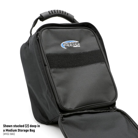 Another great storage solution with the Rugged Radios CUBE 3. Built for storing tools, cables, comm accessories, snacks, or trail essentials, this compact gear cube fits neatly inside the Rugged HS2 Storage Bag either alone or stacked.