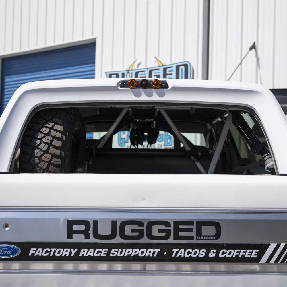 The Rugged Radios Third Brake Light Mount for Ford Bronco, F150, and F250 works with KC Hilites Cyclone 2.0 lights. This billet aluminum mount is a direct replacement for the OEM third brake light on OBS Ford Bronco, Ford F150 and Ford F250 trucks.