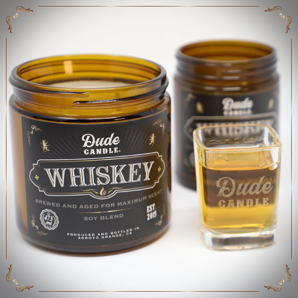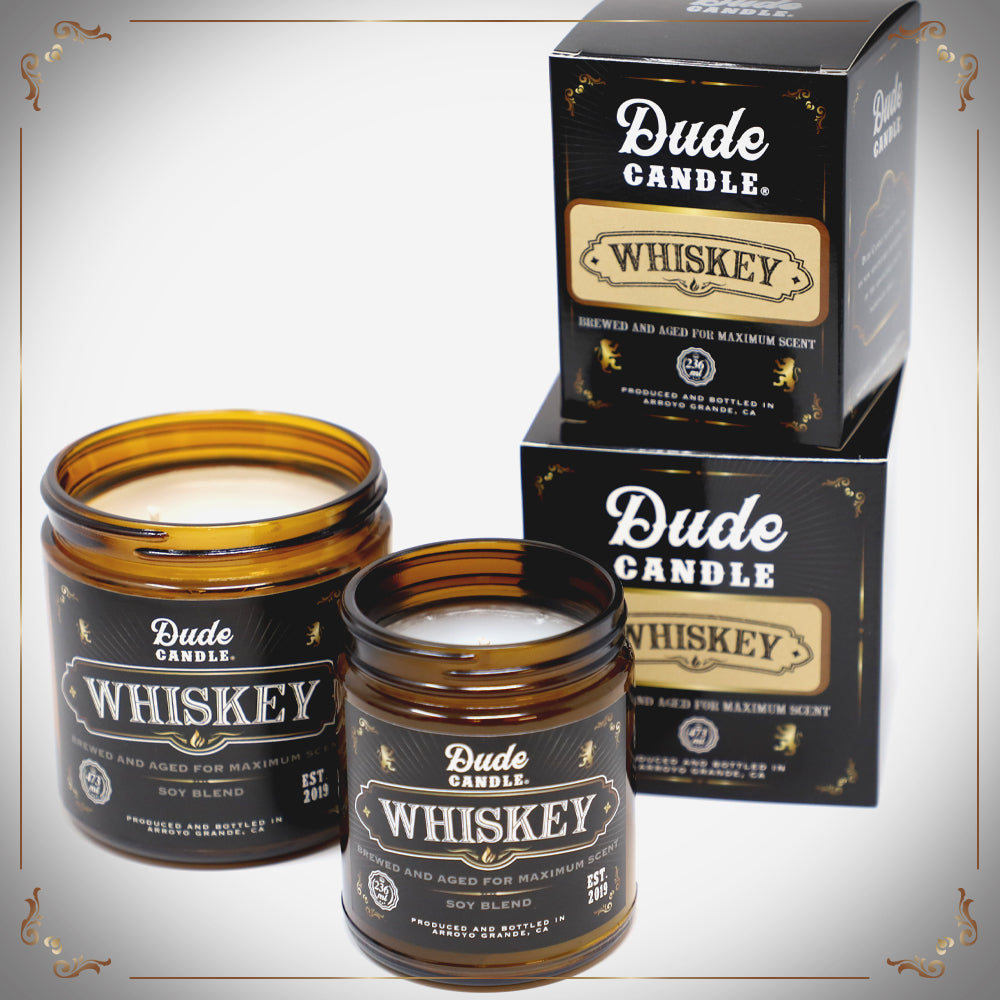 The Whiskey Dude Candle delivers the classic and unmistakable aroma of whiskey in a perfect blend of those complicated and uniquely recognizable scents. Sweet and smokey oak combined with fermented grain, warm spices and strong notes of alcohol make this Dude Candle a winner for the whiskey connoisseur.